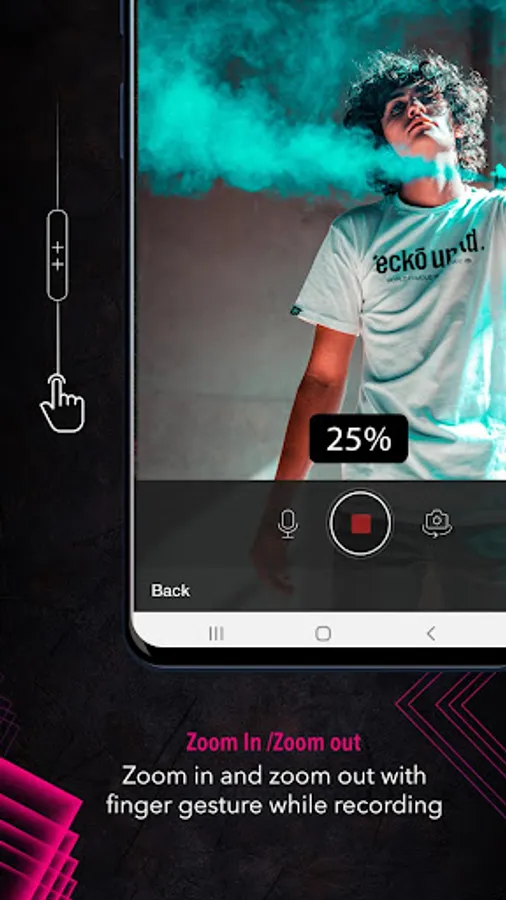 Easy zoom in and zoom out with finger gestures while recording the videos