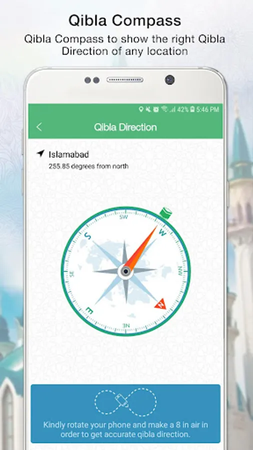 The app has a built-in Qibla Direction Compass that enables you to locate the right Kaaba Direction from anywhere in the world. Islamic Prayer Times | Qibla connect your phone GPS to the app to find the Qibla Location offline.