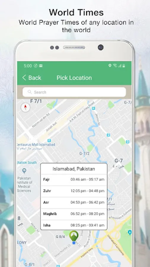 You can view the salah time from anywhere in the world including Pakistan, the US, and the UK. You just need to tap on any location around the world from the map to get the Prayer Timings.