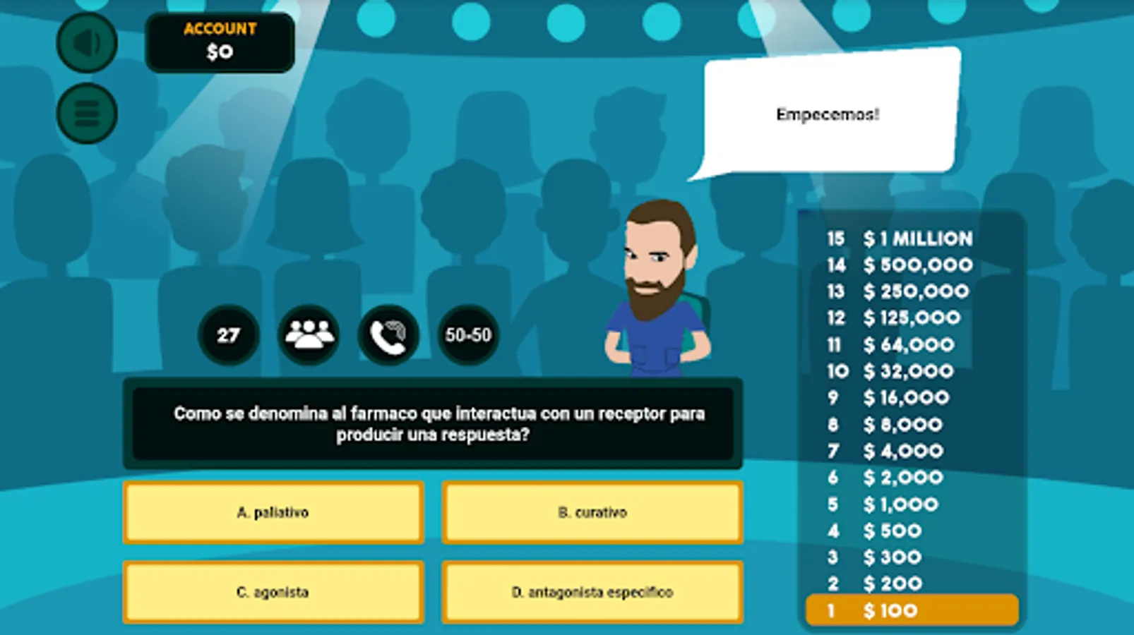 "Who wants to be a nurse @" has a library of more than 150 preparation questions to take your degree exam, these questions are randomly distributed in 3 levels of different difficulty.