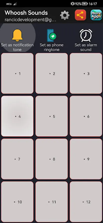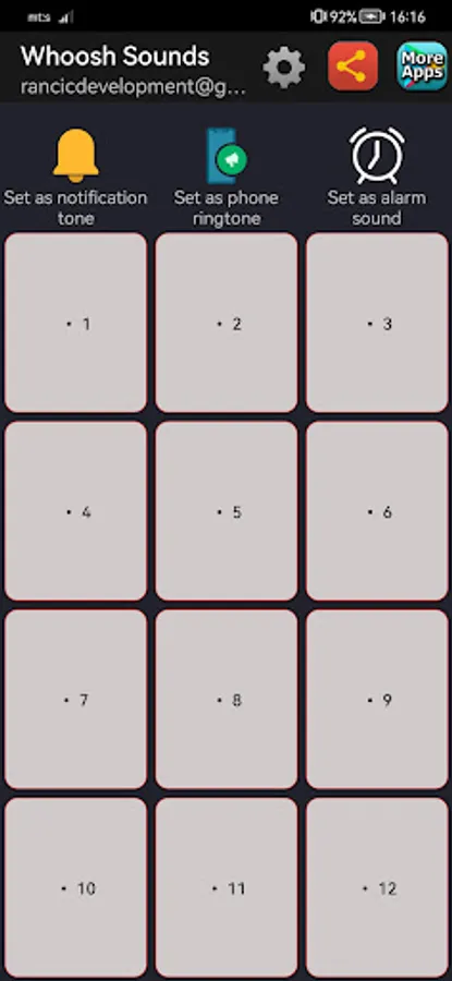 Whoosh sounds for notifications, ringtones, or alarm sounds. There are several sounds. Choose at least one, then you can set that sound as a phone ringtone, notification, or alarm sound. Rate this app and share it with friends.