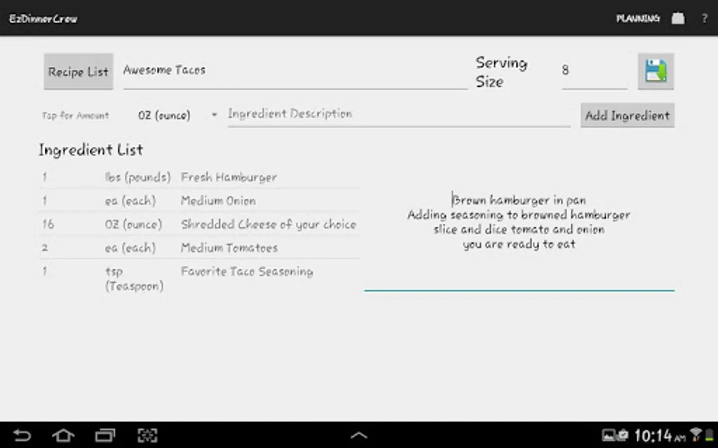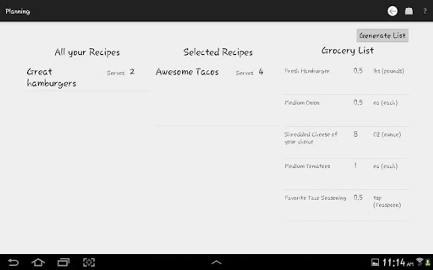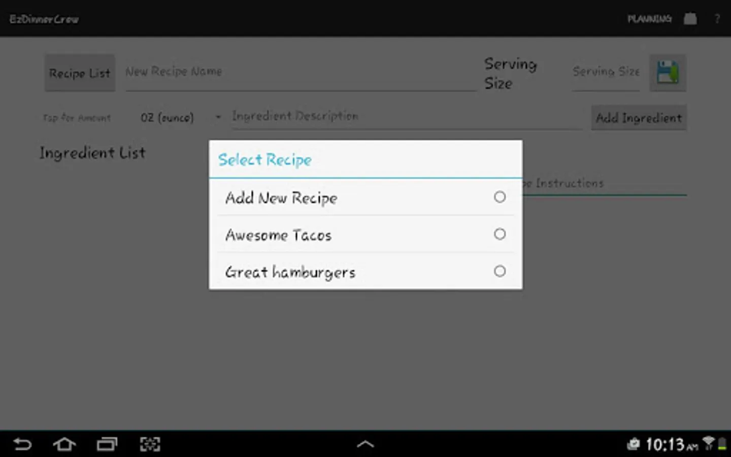 For groups or single families, ezDinnerCrew can make planning what to eat a breeze. You can select multiple recipes and generate an immediate list of grocery items which can be emailed if you chose.