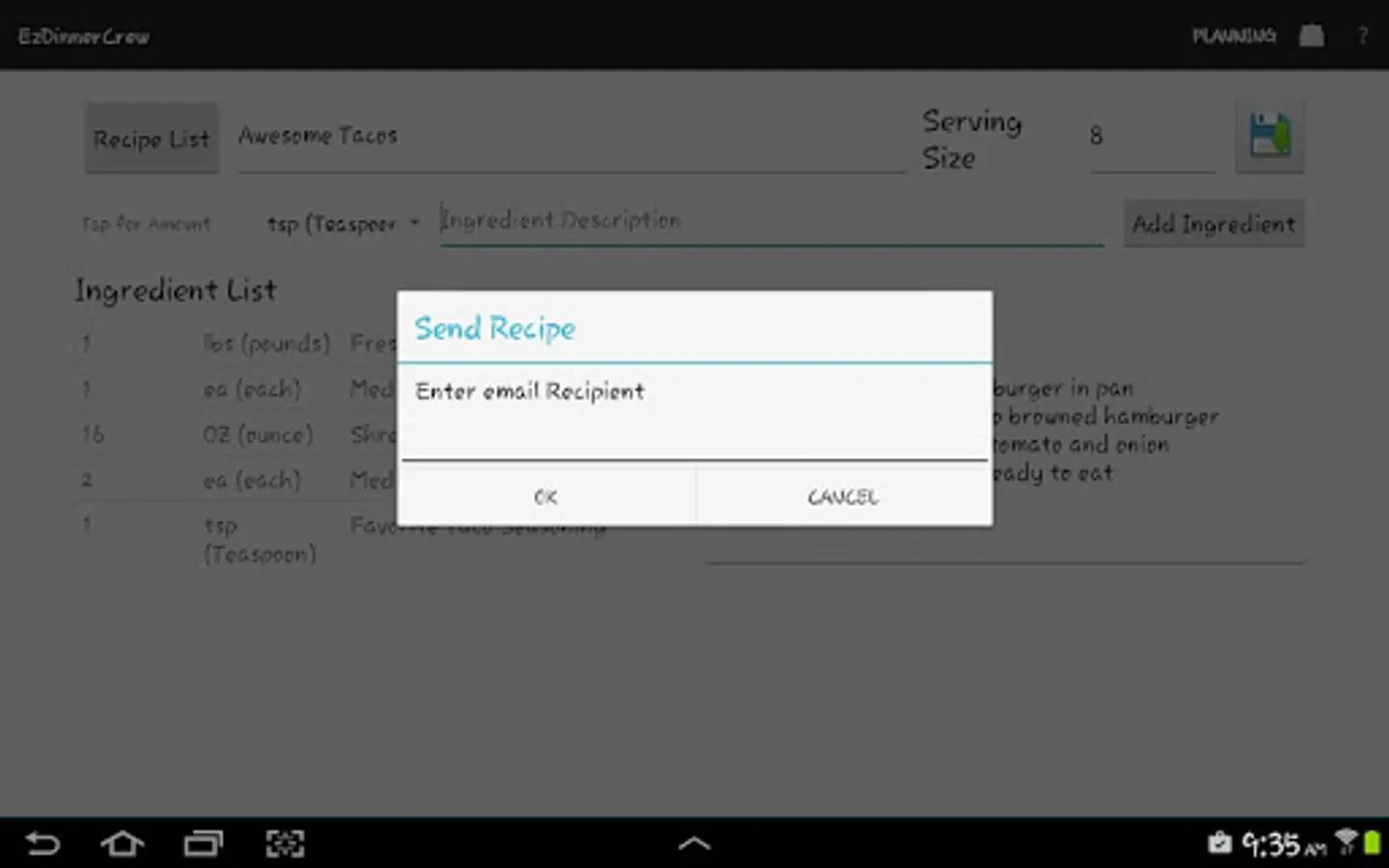 Are you part of a cooking group or club that plans dinners for families? Maybe you just want an easy way to keep track of recipes and create grocery lists from them. With the tap of a finger you can email grocery lists to your group planner or a favorite recipe to your friends.