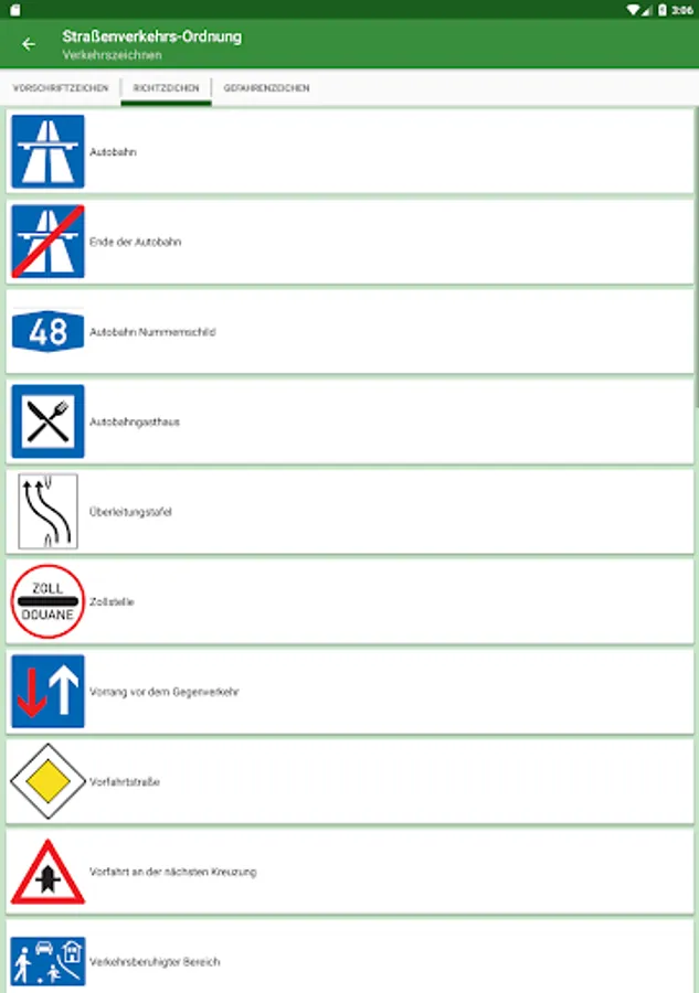 This app makes it easy to learn the German traffic rules and traffic signs. It contains the full text of the Road Traffic -order (Highway Code) as described by the German Road Safety Council (DVR) published. It is a good preparation for the theory test.