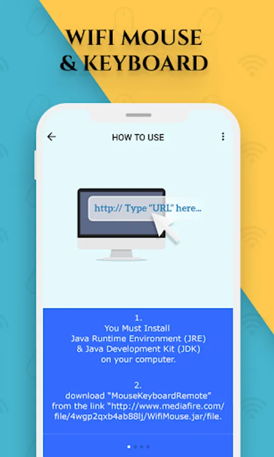 * Download JAR file using the the " http://www.mediafire.com/file/4wgp2qxb4ab88lj/WifiMouse.jar/file " on your computer. the JAR file allows you to get the IP Address of your computer which you will have to put on your phone app.