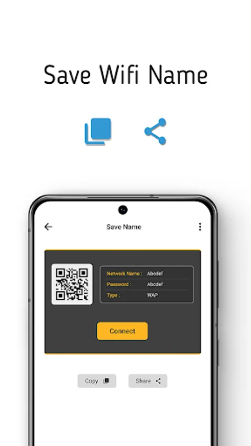 The easiest way to Share without Pressing key through a QR Code and Share you WiFi Connection with your friends, family & Colleagues without telling Your WiFi Connection WiFi pass-codes/ Password.