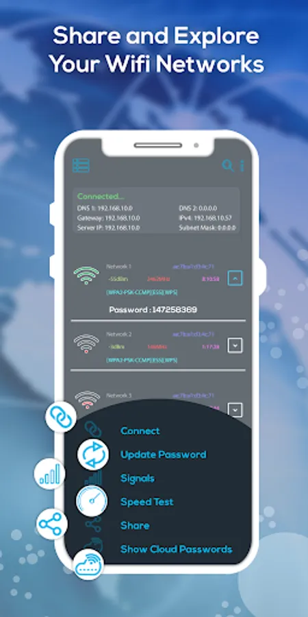 5. Tap the WiFi Connections to get Speed Test, Passwords, and Signal Strength etc.