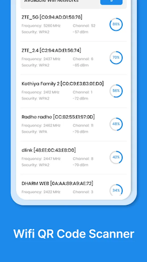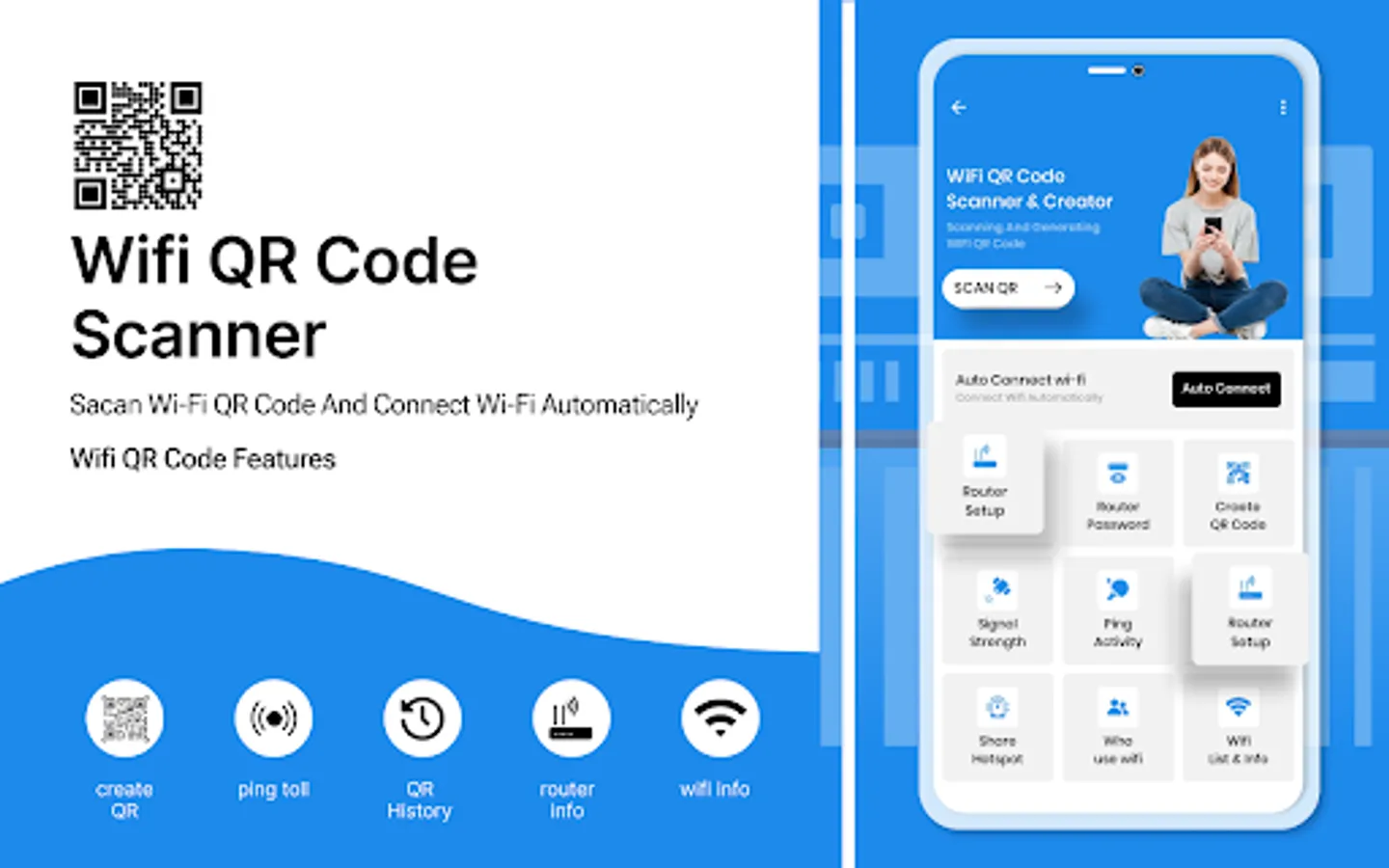 Scan Wi-Fi QR codes effortlessly and connect to wireless networks in a flash. No more struggling with long and complex passwords! Our Wi-Fi Scan QR Code scanner app deciphers encrypted information embedded within Wi-Fi QR codes, making network setup a breeze. Whether you're at a café, airport, hotel, or friend's place, easily access Wi-Fi networks by scanning the provided QR code.