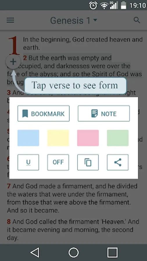 Use the favorites feature to save or bookmark your Bible study, highlight feature to make highlights in different colors, notes help you save your thoughts, conclusions.