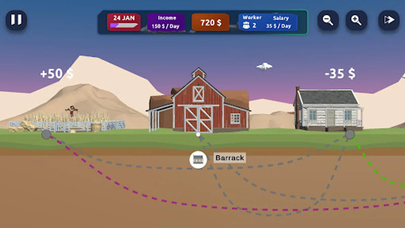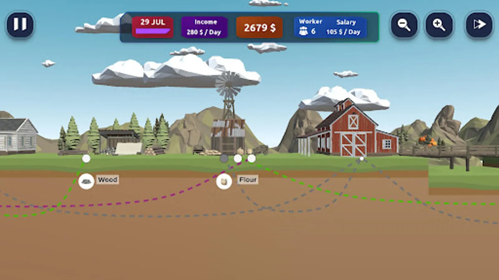 Wild Ranch: Business Simulator is a tycoon game with time management elements. You have to build your factory empire in the wild west. In this business simulator, you will fight for the best land, build farms, mills, bakeries, sawmills. With each new level you have to build more and more technological production chains. With your work and diligence, you will be able to upgrade technologies and move on to mining and metal production. Your earnings depend only on you. If you love western business management style economic games then this Wild Ranch: Business Simulator game is for you.