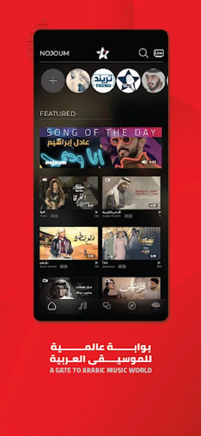 Nojoum is an app that includes Music, Entertainment and Social Media, all in one platform.
