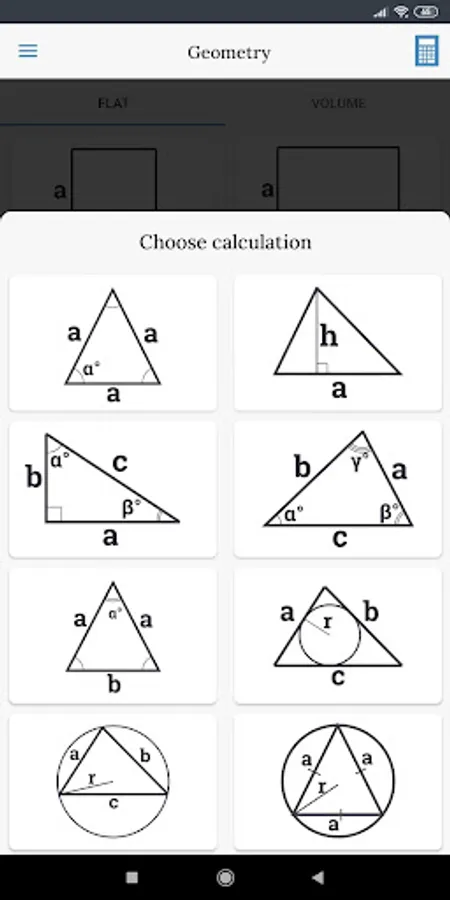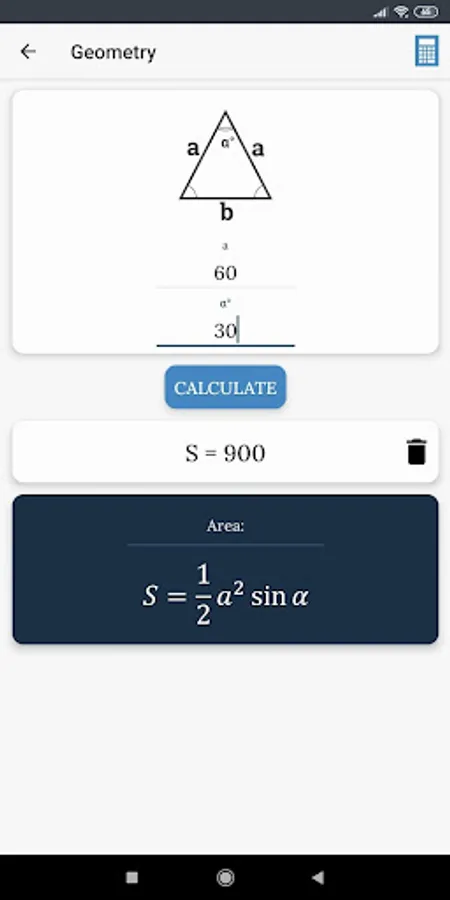 3. Calculation of the area, the perimeter and the angles of a triangle