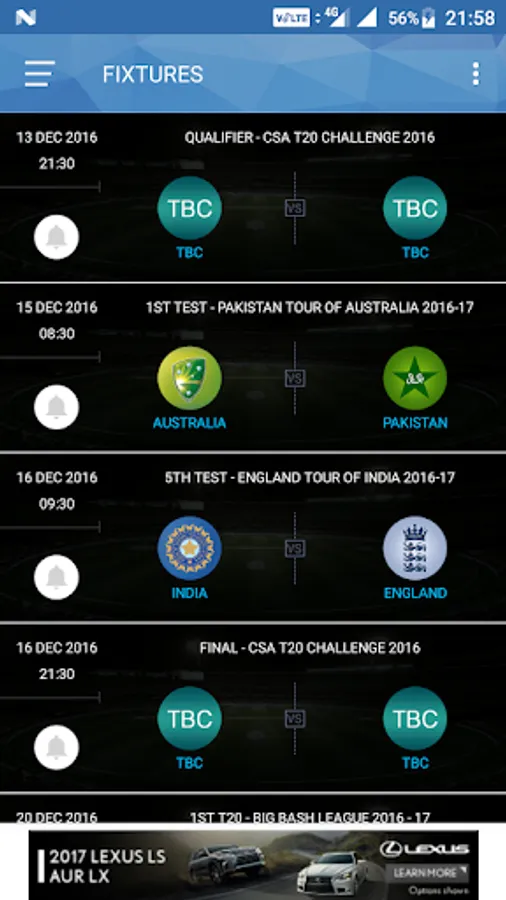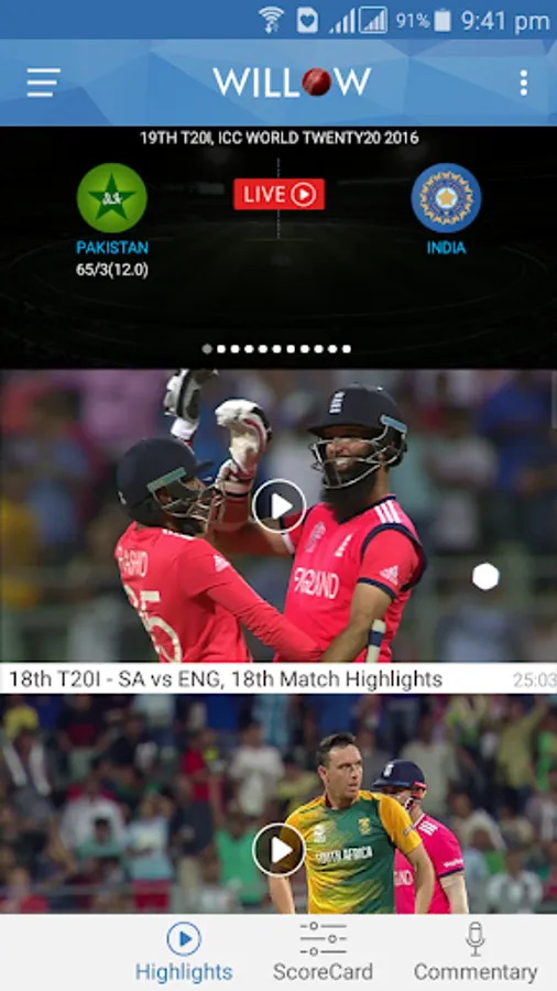 - Live streaming of all cricket action