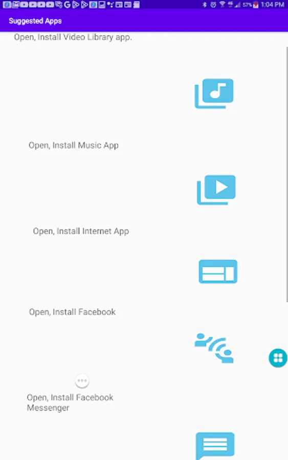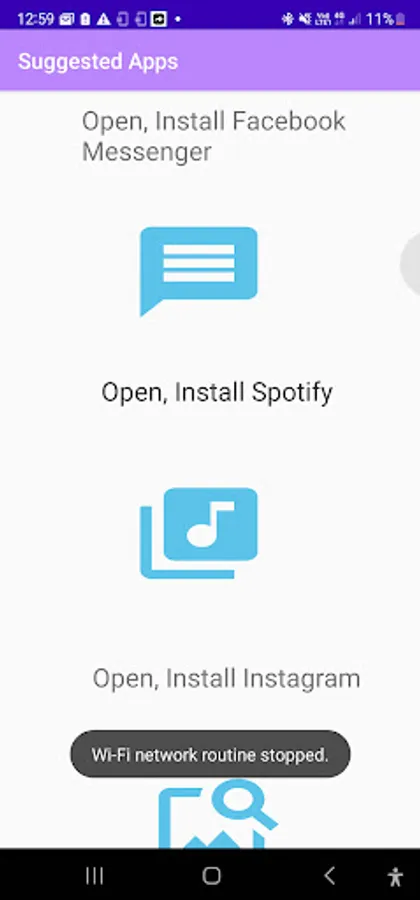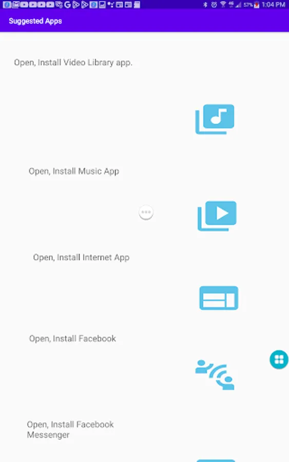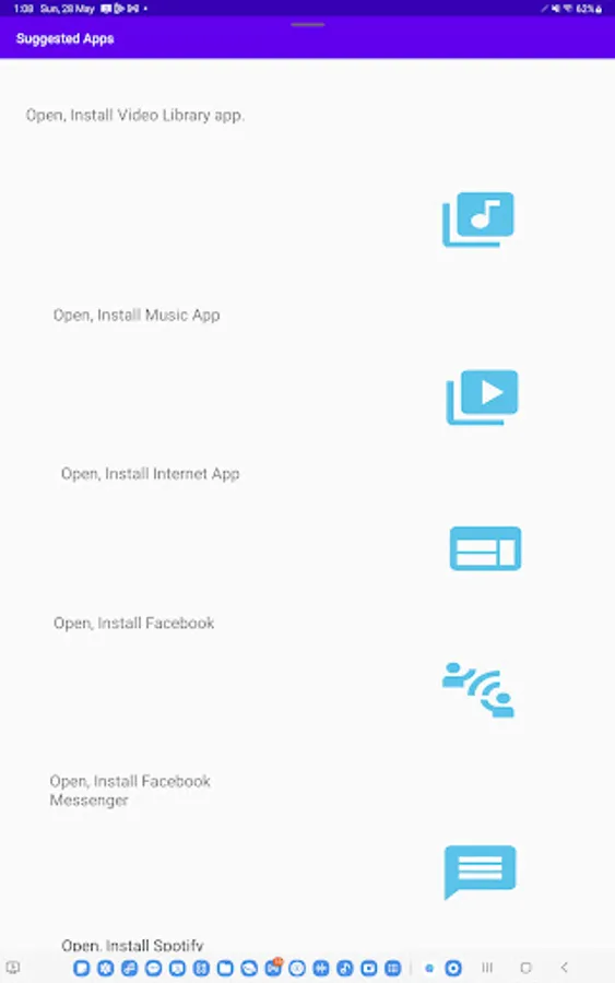 This, app, comes in handy, when setting up, your device for first time, for a few suggested apps, like Facebook, internet app, music, Spotify, flipboard, Instagram, and video library app, you can install or launch, apps, installed in this app, the ones you downloaded with the app, is handy, when apps installed to use as a launcher, of recommended apps, to launch them not find in your app launcher, is easy to use, and simple.