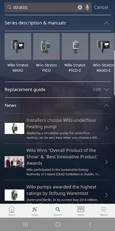 ● Interactive replacement guide: simply enter the name of the pump to be replaced and you will be provided with a recommendation of the suitable, high-efficiency Wilo replacement pump. This service can be used in conjunction with thousands of commercially-available, old pumps that were manufactured in 1975 or later.
