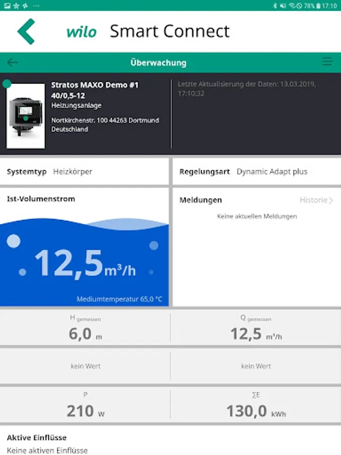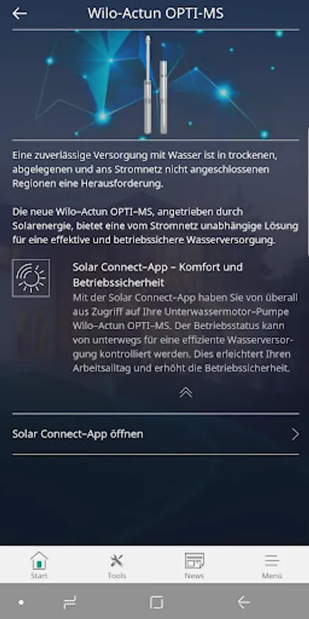 The functionalities include reading out parameterisation of Wilo products, store it, transfer it and generate documentation of commissioned products. Additionally, reading out and visualise statistical data is possible