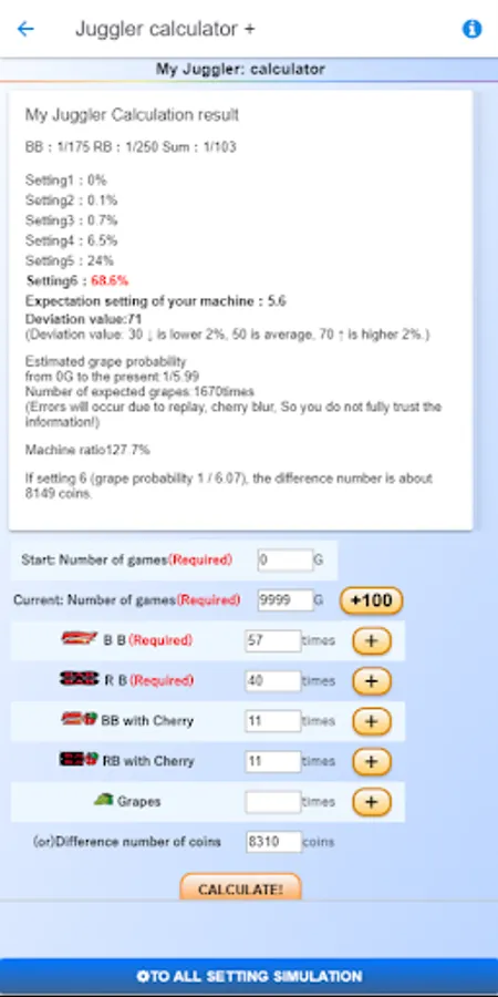 · If you enter the difference number, you can calculate the grape probability from the current difference number even if you do not count the grapes, you can set the setting!