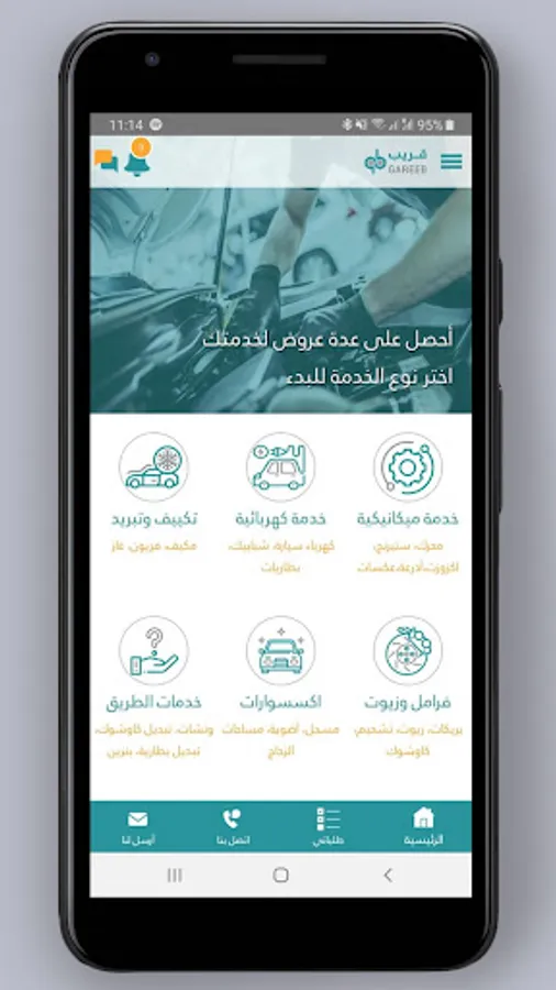 Through a nearby application you can raise the request for the service you need for your vehicle, whether it is mechanical, electrical, air-conditioning and refrigeration service, oil and rubber, accessories for the car or even if you need to service your car in its place as a request for winch or roadside assistance.