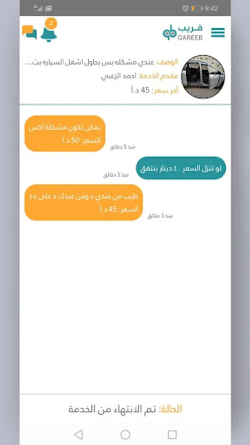 Your request will reach more than 1000 service providers registered in a nearby application, and you will get several quotes from service providers close to you who are available for your service, and you can contact them and speak with them through the chat service from within the application with all privacy and ease.