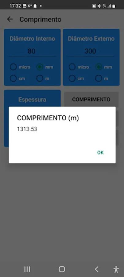 Knowing three measurements of any coiled material, a fourth can be determined. For example, if we have the measure of the inner diameter, the outer diameter and the thickness of the material, we can calculate the amount of rolled material.