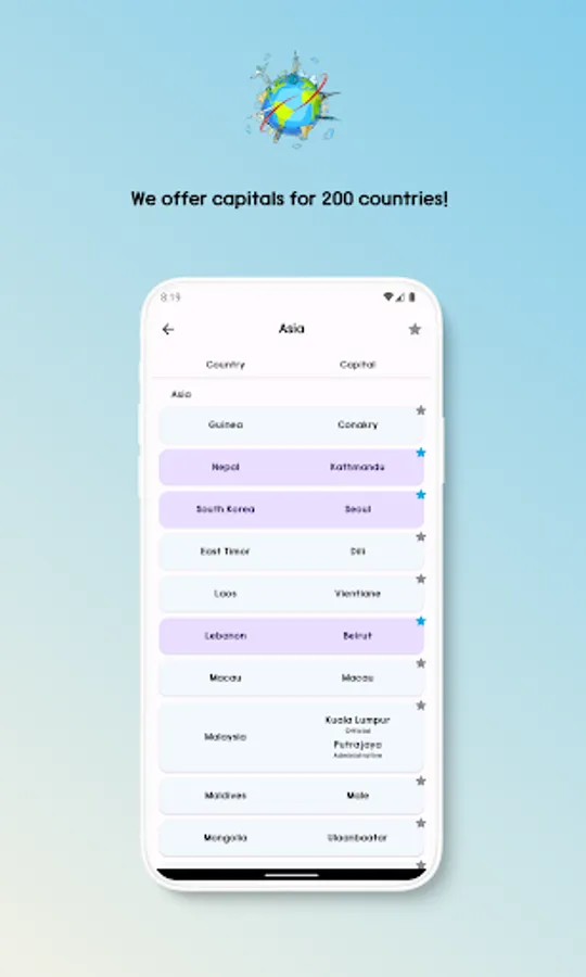 Dive into an engaging learning journey with our quiz app that offers over 200 capital cities from nations across the globe. Challenge yourself and improve your geography knowledge as you guess the capital cities of different countries. It's not only an exciting brain teaser, but it also offers a fun and interactive way to learn about the world.