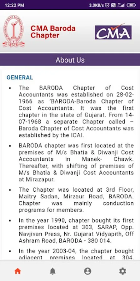 The Baroda chapter of Institute of Cost Accountants of India (ICAI) identified the need of Mobile Application for its stakeholders (Members, Students & Others).
