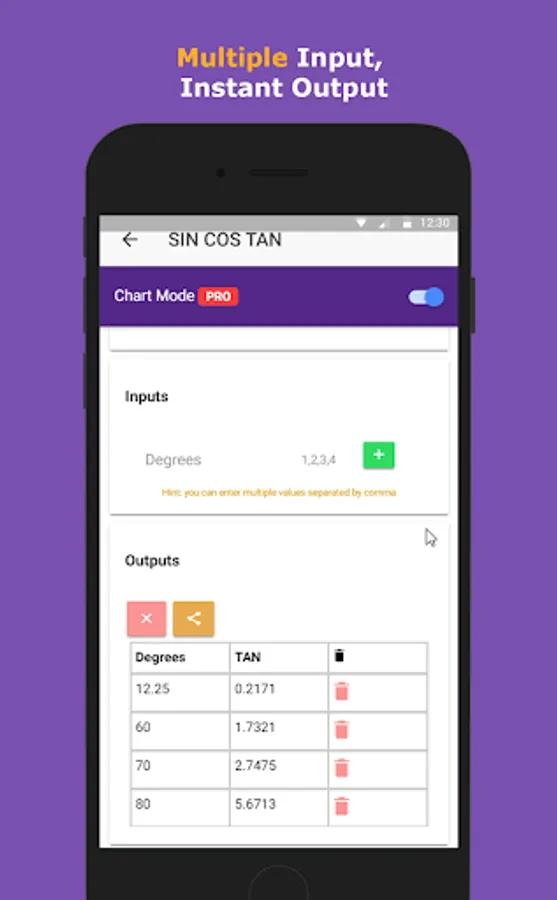* Table Mode: you can enter multiple inputs and get the output.
