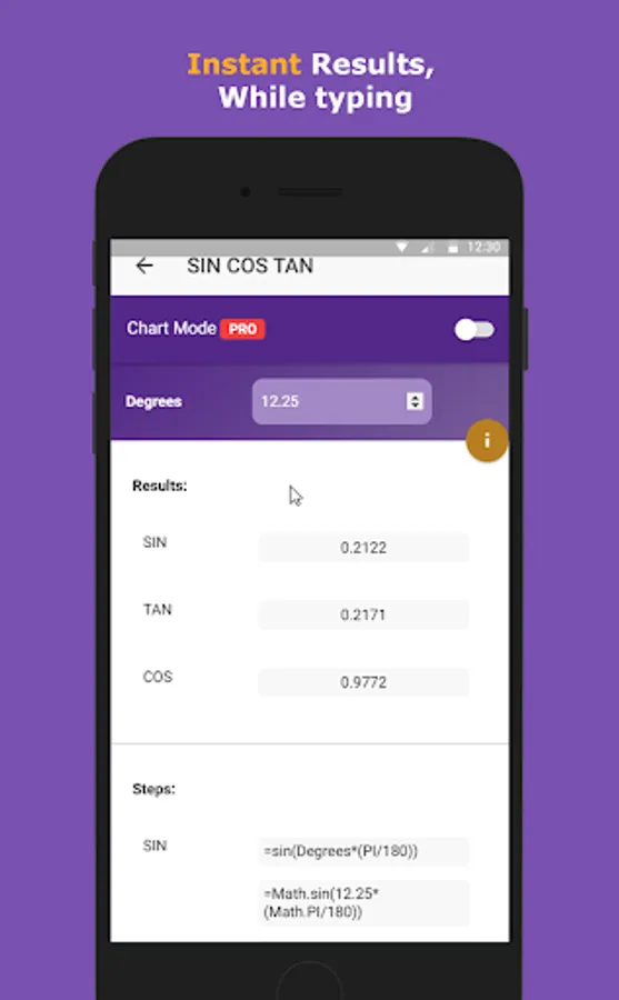 5- Supports Trigenometric functions (Sin,Cos,Tan ... )