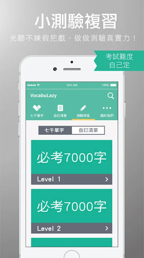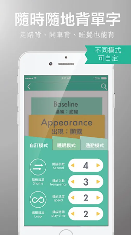 本App利用團隊的設計專長,打造出更貼心的使用者介面,帶給使用者截然不同的體驗。讓你不論躺著、坐著、站著,都能輕鬆學習英文單字