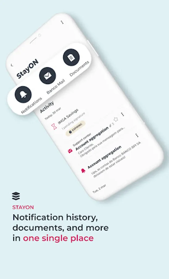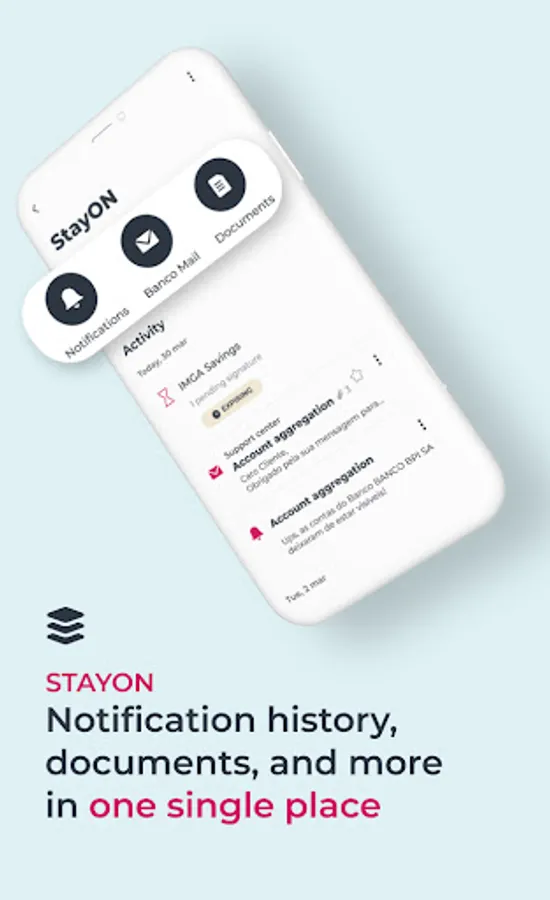 Customers asked for it and here we are delivering it: from now on, you can find all your interactions with us in one single place, so that you’re always ON top of everything: notification history, documents, Banco Mail, account manager and more.