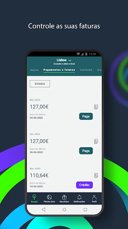 - Intuitive management of all your contracts with EDP (electricity, gas and/or services)