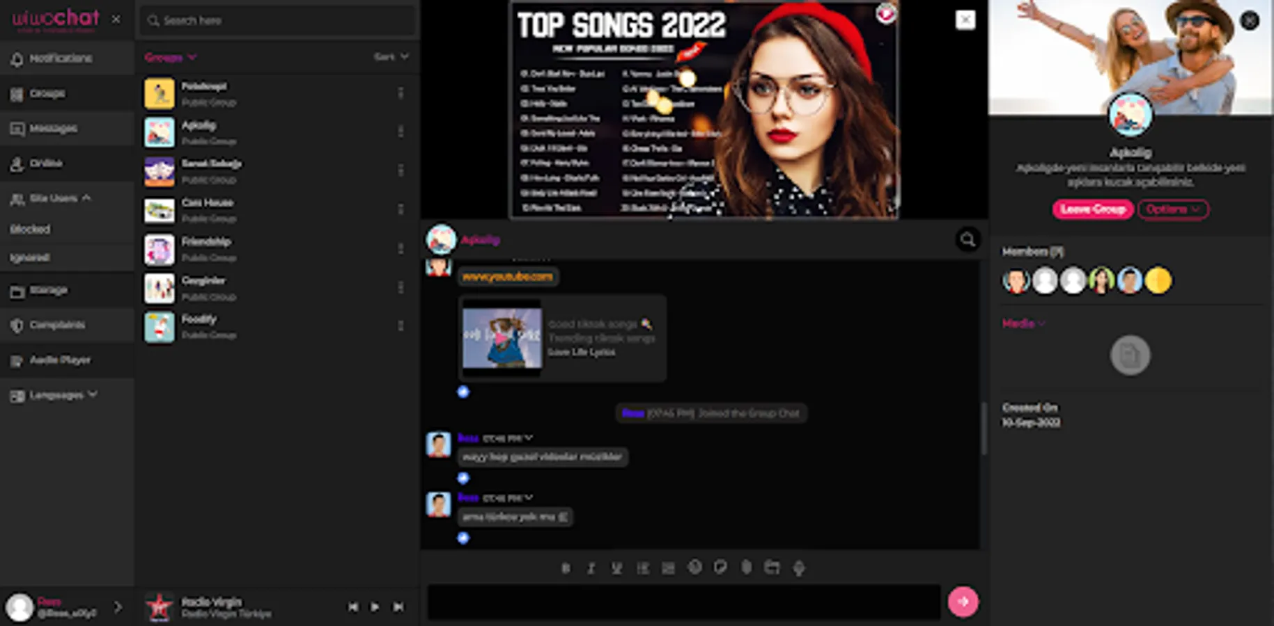 Whether your goal is to meet new people, find friends or just pass the time, do it by listening to your favorite songs, talk about social issues around you, or chat with like-minded people on a private matter. There's a room for you on WiwoChat.