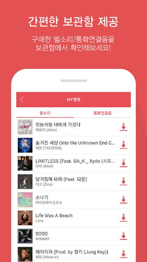 - All telecommunication companies (SKT, KT, LGU+) ringtones (coloring, ring to you, filling) available
