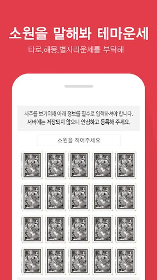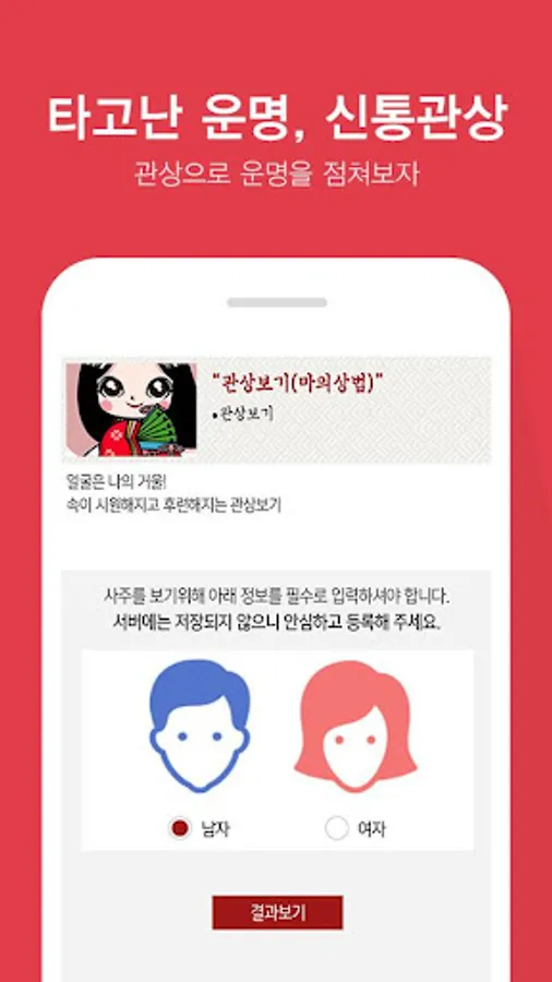 'Fortune Joa' does not use the entered fortune information other than for the purpose of solving the fortune telling, and does not store it on the server.