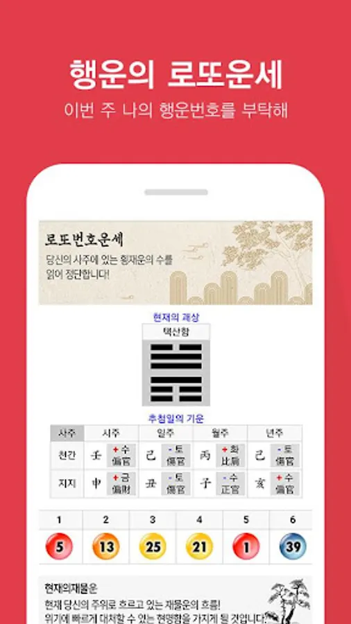 ▶ With simple four weeks information, you can use today's fortune, four weeks, compatibility, love luck, wealth luck, health luck, work luck, dream interpretation, lottery fortune, etc.