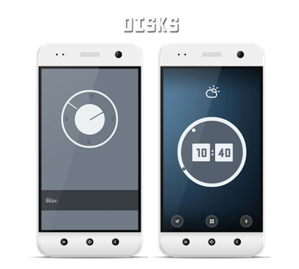 * Digital-Disk: Hands are replaced by dots here. Outer grey dot shows minute and inner white dot shows hour. Plus a digital clock at the center.