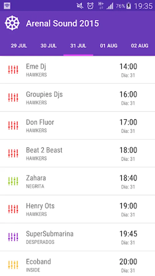 Timetable Arenal Sound Festival 2015 being offline so you do not need internet connection.