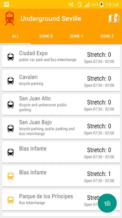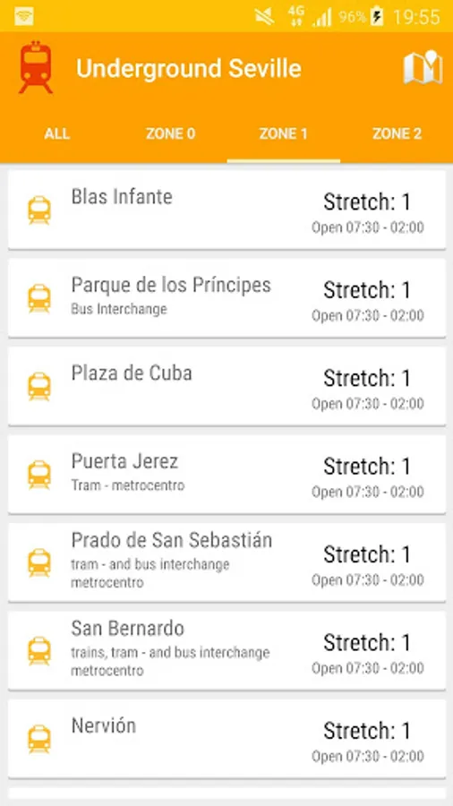 Underground stations in Seville and also an extra information to show the different transport connections.