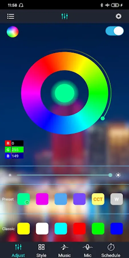 Through the mobile phone APP, the color, brightness and color temperature of the magic LED light strip can be intelligently controlled, and the flashing mode of various patterns can also be set, and the magic LED light strip can be pulsed with the music rhythm. You only need to keep the LED LED light belt energized, turn on the smart control software of the lotus lamp APP, and connect one or more LED light belts through bluetooth, so as to realize various Settings and controls of multiple LED light belts. Operation is very simple, easy to learn and easy to use!