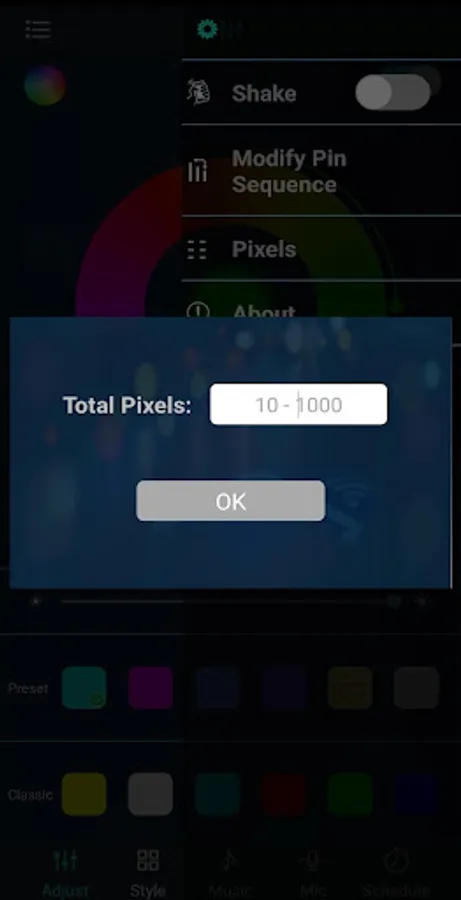 You can use it to do some controls and settings , such as dimming and grading, setting various dynamic modes and scenes, music rhythms of several sound sources and optional rhythm styles, timer setting for lights on/off, pixel setting, line sequence setting, etc.
