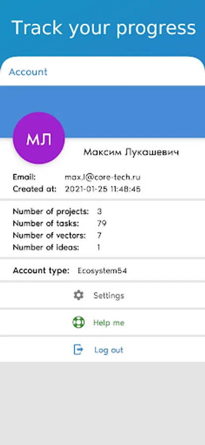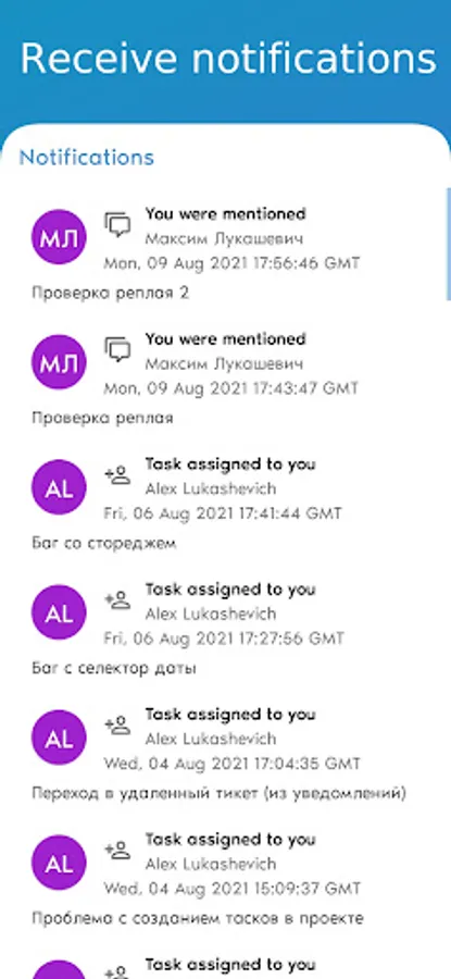 In the application, you can work with tasks, projects, vectors. Also receive notifications.