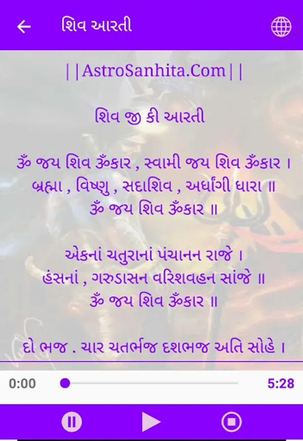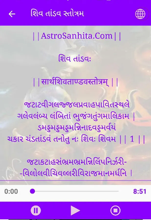 AstroSanhita.Com's Shiva Mahamrityunjaya-Tandava-Chalisa-Arti-Stuti is a most powerful and widespread mantra and strotram in Hinduism. Mantras and strotram of this app are known as the heart of the Vedas and Tantra. App is available in 3 different languages English, Hind language and Gujarati.