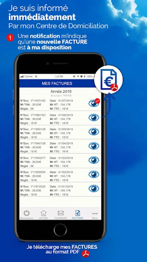 Your INVOICES: Receive a notification as soon as a new invoice has arrived in your customer area. The history of your invoices sorted by year allows you to find them easily to download them in pdf format for viewing and saving.