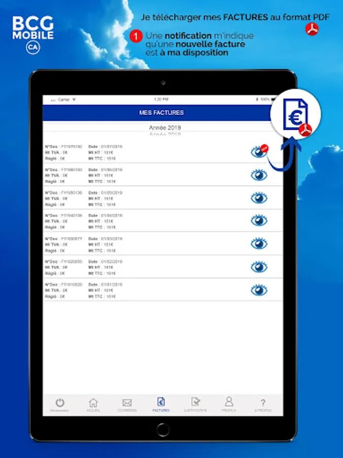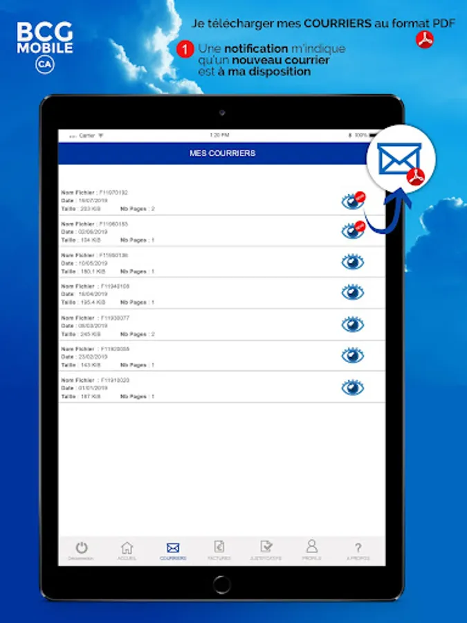BCG MOBILE CA is used by clients domiciled or hosted by Business Centers, Business Incubators, Coworking Rooms or CCIs. You receive a notification as soon as a document is sent to your customer area: