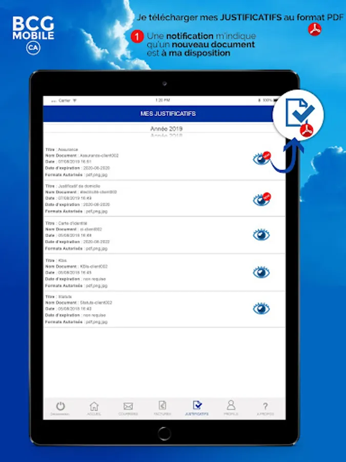 YOUR RATIONALE: A notification tells you that a new scanned document is sent to your customer area or that the date of a revolving document expires. Download it in pdf format to check it.