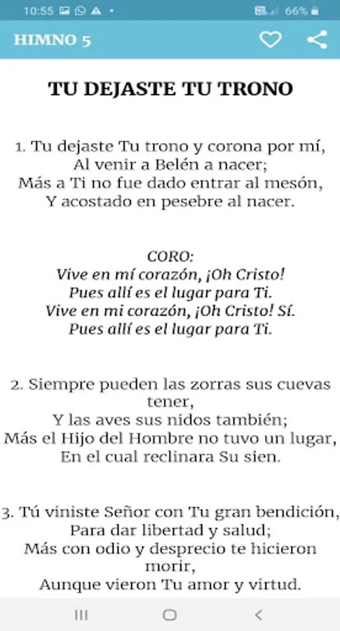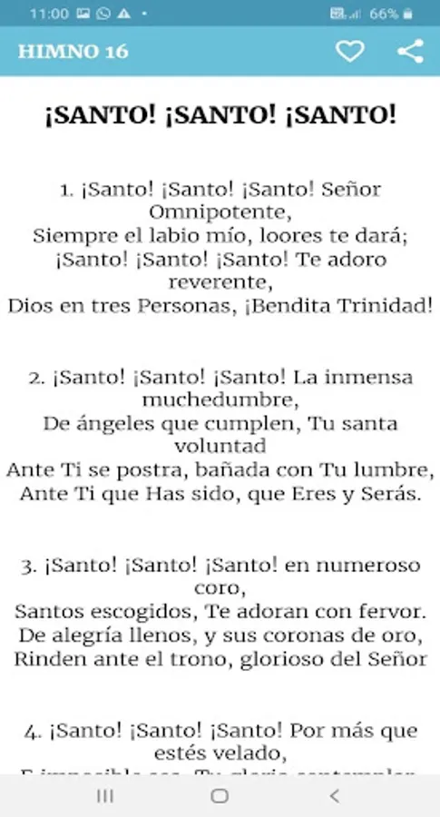 You will find all the hymns in the hymnal and you can choose how you want to see it, modifying the type of font, font size and even the color, to make a reading of the hymns a more enjoyable experience.