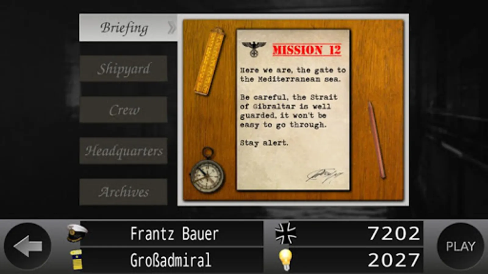 Infiltrate through English Channel, Gibraltar, Suez Canal and others dangerous areas. Always stay alert, sail the seas and the oceans, use your sonar, sink warships and cargo ships, avoid being detected and try to escape the merciless Royal Air Force.