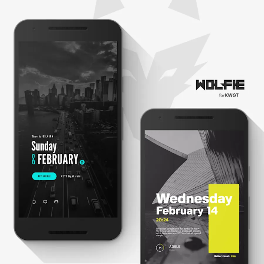 Wolfie is a pack of 186 beautiful widgets for KWGT and 88 wallpapers. Widget pack is frequently updated.