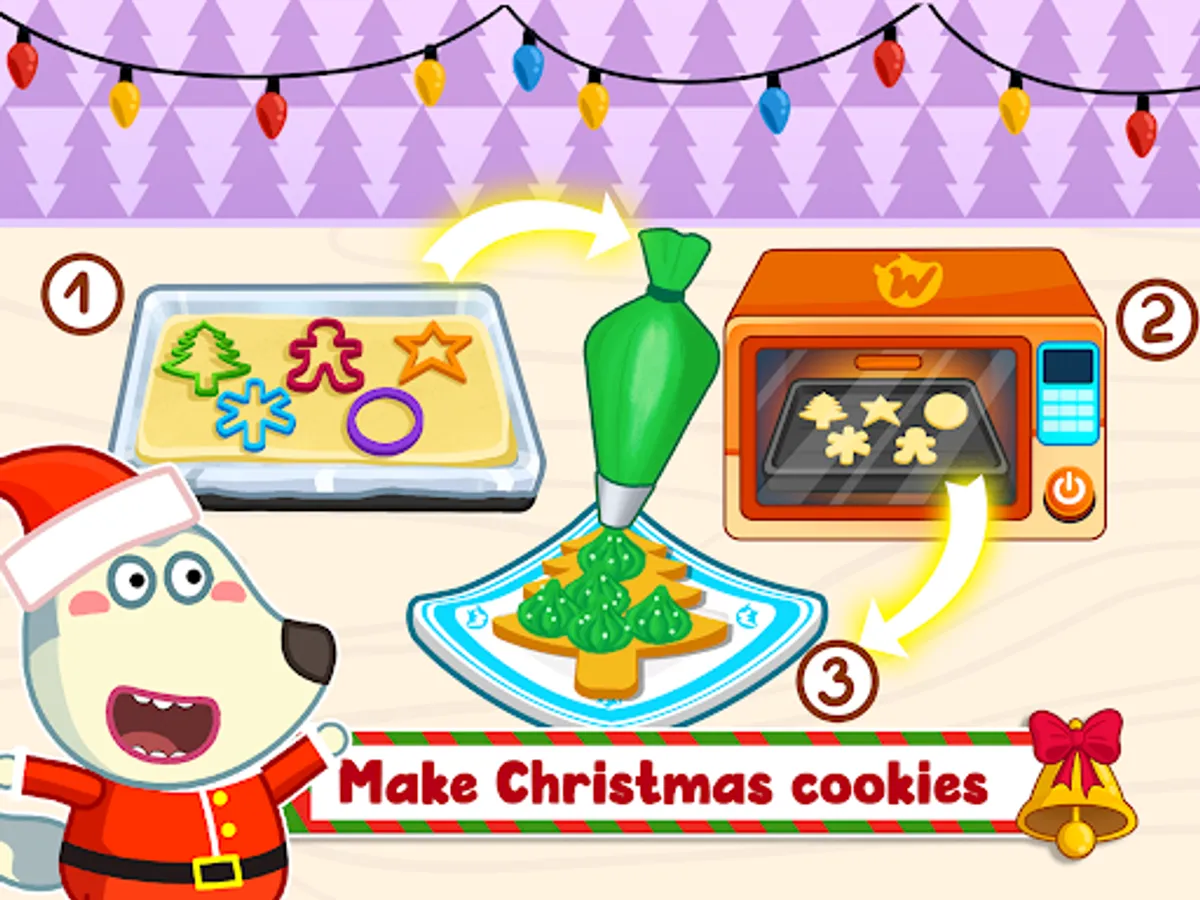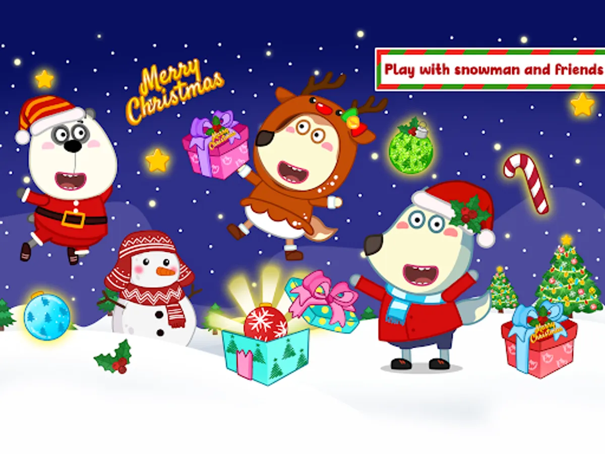Let's decorate Christmas card for family and friends with Wolfoo. You can draw Christmas tree, santa claus, choose your favorite color for the paper sheet, choose stickers to make xmas card by your your own style. DIY things can be hanged on the Christmas tree at classroom. So you can make Christmas stockings, Christmas wreath, reindeer teddy bear, handmade bells, bauble, fairy lights. Let's try to make all of those beautiful decoration toys with Wolfoo and friends. In addition, there are some fun games to join in the winter playground at school. Let's play with snow man, Wolfoo, and other classmates. Last but not least, you can be a great chef by cooking for Christmas party. Make many yummy cakes, gingerbread cookies, yule log, candy cane, turkey, eggnog, pudding. Don't forget to cleanup after a delicious meal with your funny friends. It is a good choice of kid game for you to play on this Christmas holiday.
