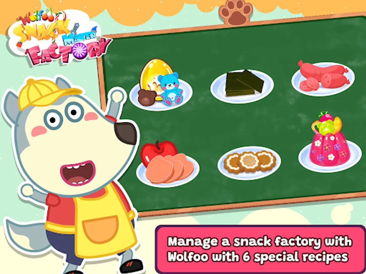 π©π»βπ³ Welcome to Wolfoo's snack factory! This creative and entertaining factory has lots of fun cooking and packing activities in the kitchen. Let's run the factory with Wolfoo and complete customer orders to receive gifts! This is a game specially designed for childrens, they will enjoy the joy of cooking, expand their understanding of cooking utensils and food around. Children can make their own dishes by following the recipes provided.